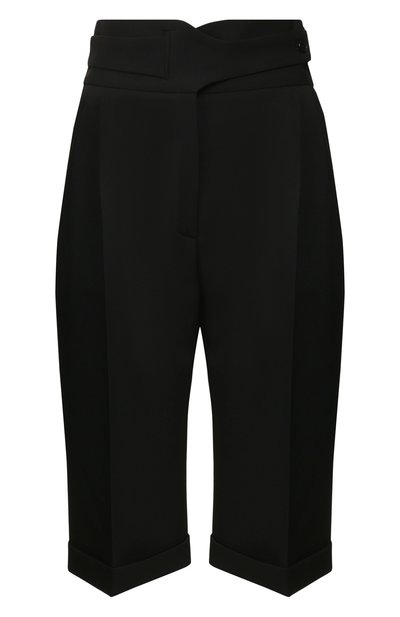 Черные шорты из весенне-летней коллекции выглядят так, словно их перешили из классических брюк. Это отразилось в дизайне и материале: удлиненную модель со стрелками и шлевками мастера бренда, основанного Ивом Сен-Лораном, изготовили из тонкой из плотной шерсти, которая хорошо держит форму. Для создания повседневного образа наши стилисты рекомендуют носить модель с рубашкой и туфлями.