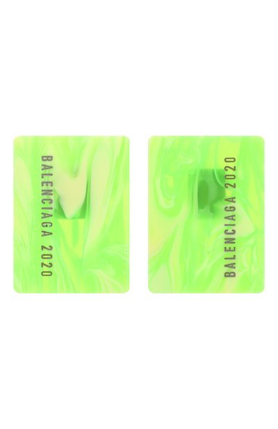 Кислотно-зеленые крупные серьги с застежками-пусетами выполнены в виде кредитных карт из мраморного глянцевого ацетата. Такое украшение сразу попадает в центр всеобщего внимания, поэтому дополнять им можно даже самый простой образ.
