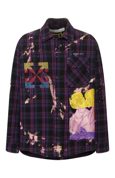 Сложная вышивка, выразительно мерцающие стразы и хаотично выбеленные участки на фоне крупной фиолетово-синей клетки: при создании рубашки Верджилу Абло удалось сочетать эти разные спецэффекты. Модель не только оставляет в центре внимания, но и отвечает за комфорт в течение дня. Мягкая хлопковая фланель особенно приятна на ощупь.