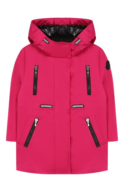 Парка оттенка фуксии сшита из непродуваемого и непромокаемого полиамида с гладкой поверхностью. Куртка без подкладки дополнена объемным капюшоном и четырьмя карманами, которые застегиваются на контрастные молнии. На рукаве ‒ фигурный патч-эмблема.