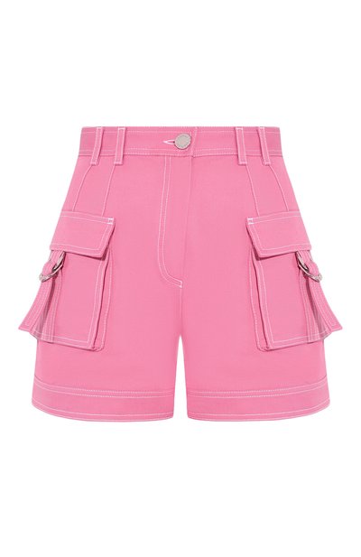 Ярко-розовые шорты из весенне-летней коллекции бренда, основанного Пьером Бальманом, зададут правильное настроение повседневному образу. Например, наши стилисты предлагают носить с кроп-топом и босоножками на платформе. Для создания модели с высокой посадкой и накладными карманами, как у карго, Оливье Рустен выбрал мягкий эластичный деним. Графичности изделию придали контрастной белой строчкой.