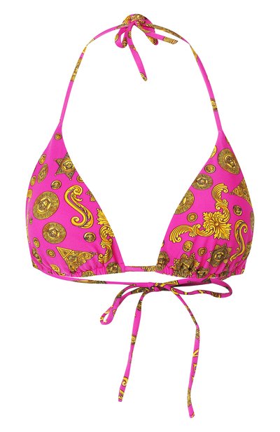 Яркий оттенок фуксии и золотистый принт Barocco western, вдохновленный архивным мотивом 1991 года, помогут этому бра задать правильное настроение на весь отпуск. Мастера марки выполнили модель из тонкого прочного полиамида. Материал мягко облегает фигуру и быстро сохнет, обеспечивая коже комфорт.
