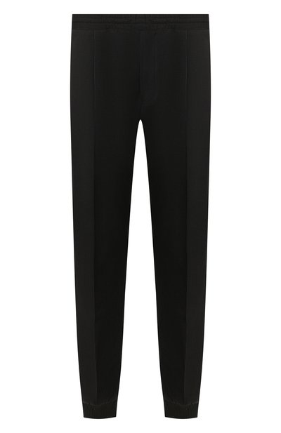 В случае с темно-серой моделью из весенне-летней коллекции бренда, основанного Алессандро Берлути, тактично соединили черты джоггеров и классических брюк. От первых изделие вобрало в себя широкие эластичные манжеты и пояс-резинку, а от вторых позаимствовало силуэт, стрелки и материал — фактурный габардин из тонкой шерсти virgin. Такая одежда почти не мнется, надолго сохраняя свежий внешний вид.