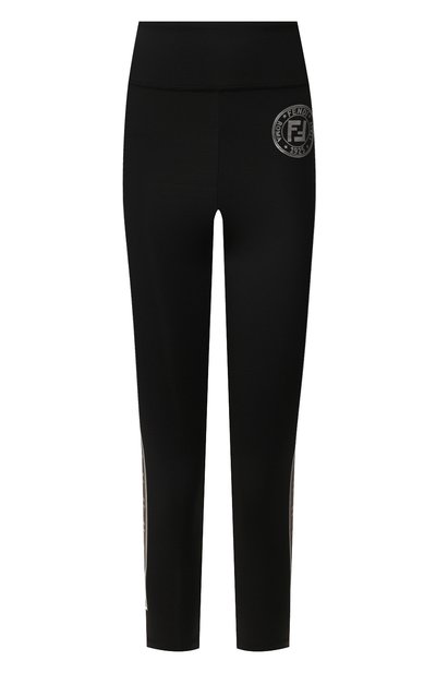 В весенне-летнюю коллекцию Сильвия Вентурини-Фенди включила угольно-черные леггинсы с узнаваемым жаккардовым логотипом бренда, который подчеркнули серебристым кантом. Модель с завышенной посадкой, которую подчеркивает широкий пояс, сшили из эластичной микрофибры с матовым блеском.