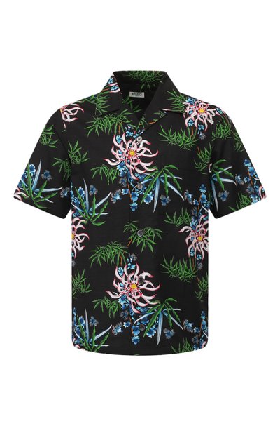 Изображение морских лилий поддерживает тематику весенне-летней коллекции, на создание которой дизайнеров марки вдохновила жизнь рыбаков и ныряльщиков за жемчугом. За счет такого яркого принта на черном фоне рубашка автоматически не выглядит просто. Прямую модель сшили из тонкого дышащего материала на основе хлопка и льна, поэтому в ней будет комфортно даже в жаркую погоду.