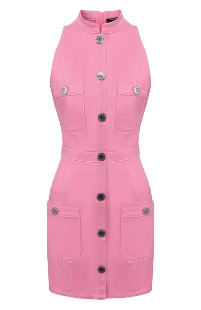 Мини-платье нежного оттенка малинового суфле выглядит самодостаточно и не нуждается в дополнительных акцентах, поэтому от крупных аксессуаров лучше отказаться. Для создания модели из весенне-летней коллекции Оливье Рустен выбрал мягкий стрейчевый деним, который идеально садиться по фигуре. Декором выступили серебристые многочисленные пуговицы с выгравированной фамилией Пьера Бальмана.