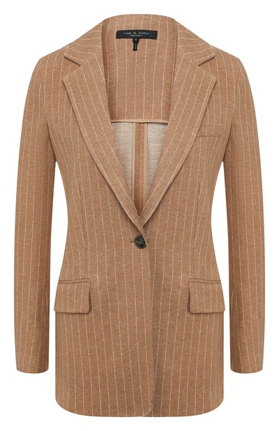 Попробуйте сделать однобортный пиджак оттенка кофе с молоком основой гардероба, а остальные вещи добавлять по вкусу. Например, мы предлагаем носить с футболкой, парными брюками и босоножками. Для пошива модели из весенне-летней коллекции использовали тонкое хлопковое джерси. Такой материал обеспечивает тот уровень комфорта и практичности, которого недостает изделиям из классической костюмной ткани.
