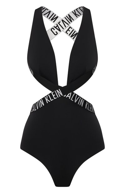 Несмотря на сдержанный черный цвет слитный купальник не выглядит просто за счет фигурных вырезов. Их подчеркнули брендированным кантом, который переходит в пояс и перекрещивающиеся сзади бретели. Модель с открытой спиной сшили из эластичного быстросохнущего нейлона.