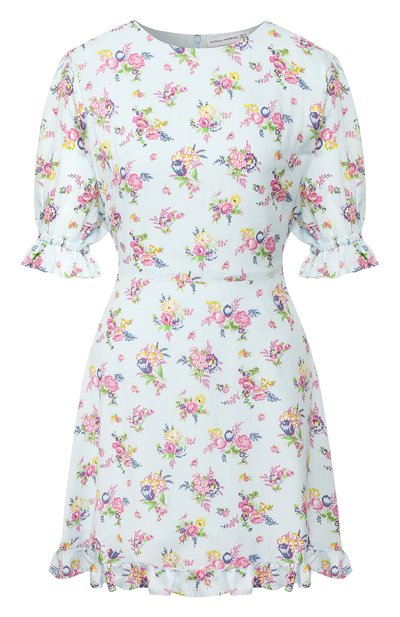 Пастельный голубой цвет, неяркий цветочный принт, приталенный крой и мягкие оборки: чтобы задать короткому платью из осенне-зимней коллекции романтичное настроение, дизайнеры марки применили сразу несколько своих любимых спецэффектов. Для пошива модели с круглым вырезом использовали тонкую немнущуюся вискозу.