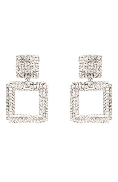 Идею крупных серебристых клипсов определяет математически выверенный силуэт. Украшение составили из двух разных квадратов, соединенных прямоугольной перемычкой. Блеск латуни с родиевым покрытием усилили миниатюрными прозрачными кристаллами. За счет множества граней при любом освещении будет создаваться активная игра бликов. Такой аксессуар привык солировать в образе, поэтому наши стилисты рекомендуют отказаться от ярких колье.