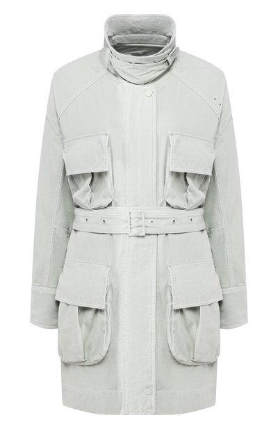 В исполнении дизайнеров бренда плащ выглядит расслабленно. Главную роль сыграли приглушенный мятный оттенок и вместительные накладные карманы. А за счет плотного хлопкового габардина изделие из весенне-летней коллекции не потеряет форму под дождем и защитит от порывов ветра.