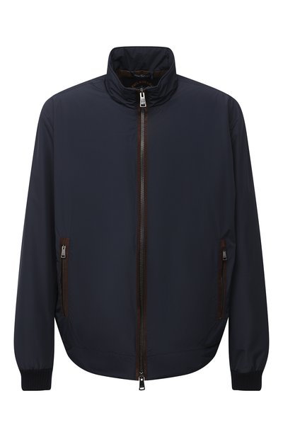Прямая темно-синяя куртка из осенне-зимней коллекции сшита из гладкого непромокаемого текстиля с матовым блеском. За дополнительную защиту от ветра отвечает высокий воротник стойка. Утепленная модель с двумя врезными карманами отделана мягкой кожей оттенка горького шоколада.