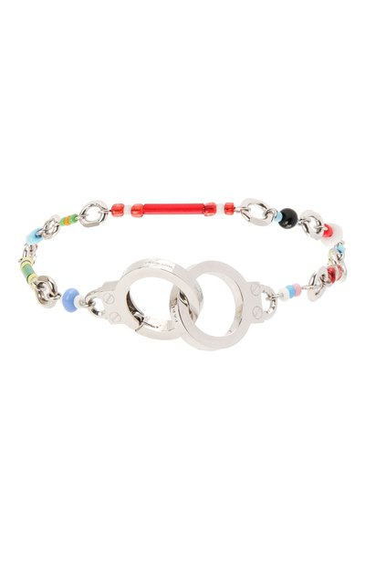Мастера бренда изготовили браслет из ювелирного сплава с гальваническим напылением серебром, за счет которого аксессуар не потускнеет со временем. Разноцветные бусины произведены из комбинации трех материалов: пластика, стекла и эмали.