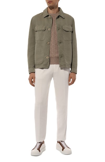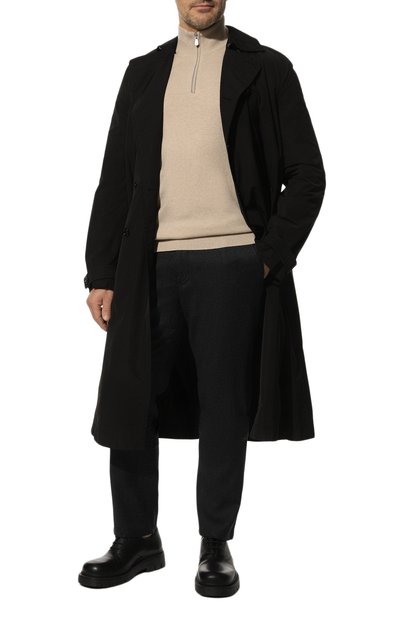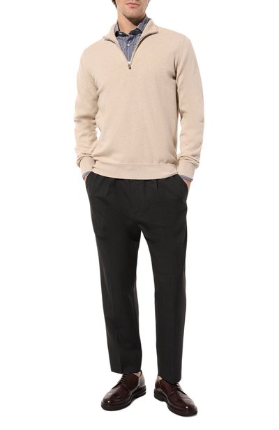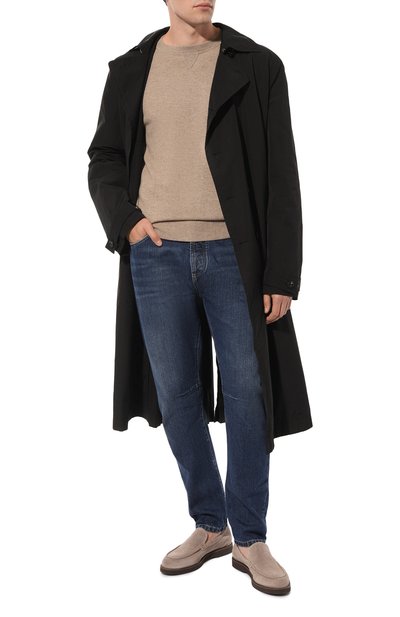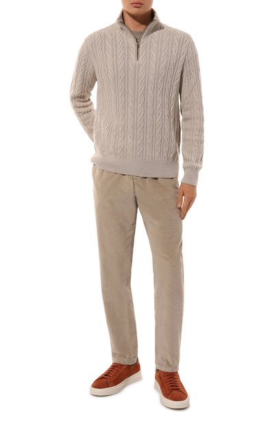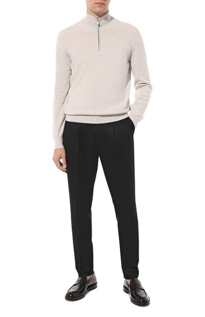 Джемпер с круглой горловиной связали английской резинкой из кашемира. Модель с контрастным кантом на манжетах в рубчик органично впишется в базовый гардероб.