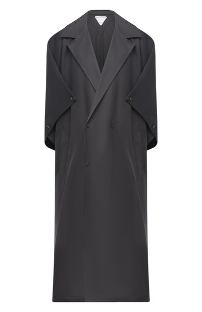 Дэниел Ли привил свободному серому плащу из межсезонной коллекции гены кейпа при помощи длинных боковых разрезов и стилизованных под накидку вставок, которые фиксируются кнопками спереди. Для пошива двубортной модели с широкими лацканами мастера марки использовали тонкий и при этом прочный хлопковый габардин.