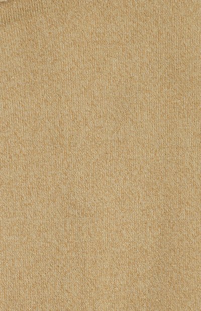 Кремовые носки мастера марки выполнили из тонкого эластичного трикотажа на основе согревающего кашемира и мягкого шелка. В состав материала добавили металлизированные нити, которые придали модели легкий блеск. Края оставили необработанными, поэтому они подворачиваются узким роликом.