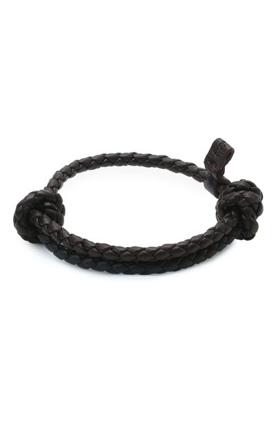 Браслет цвета гречишного меда выполнили в знаковой технике intrecciato . Мастера марки вручную переплели узкие полосы тонкой кожи наппа, которую предварительно разутюжили, чтобы она стала особенно мягкой и эластичной. Объем изделия удобно регулировать с помощью крупных узлов.