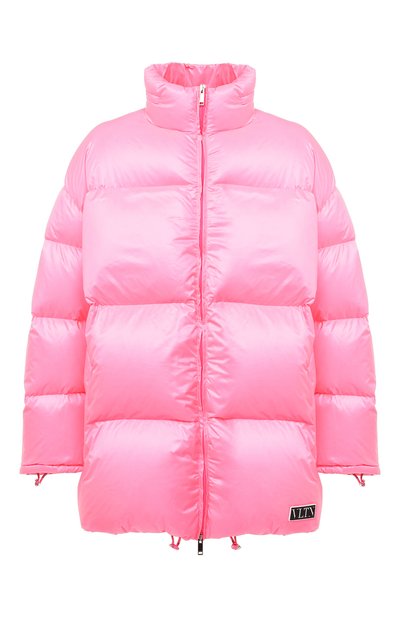 Чтобы привлечь внимание, стеганой куртке из осенне-зимней коллекции не нужен яркий декор. С задачей справляются гипертрофированный объем и ярко-розовый оттенок. Модель из гладкого нейлона утеплили отборными пухом и пером. Изделие дополнили капюшоном, скрытым под молнией на воротнике. О принадлежности бренду расска зывает патч с аббревиатурой VLTN, которую Валентино Гаравани в 1980-х использовал в качестве логотипа.