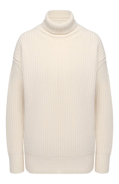 Свитер из мягкой шерстяной пряжи сделает образ с клетчатыми брюками и светло-бежевыми сабо более расслабленным. За правильное настроение отвечают свободный силуэт и спущенная линия плеч. А универсальный молочный оттенок делает модель из осенне-зимней коллекции удачной инвестицией в гардероб.