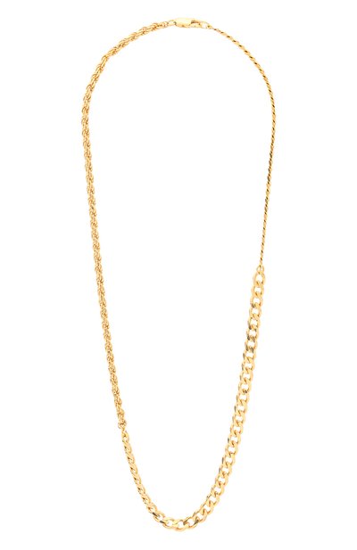 При всей лаконичности цепочки она не выглядит тривиально. Украшение будто сложили из трех аксессуаров. Такую ассоциацию формируют несколько плетений и звенья разной величины. Для изготовления модели мастера марки использовали серебро 925 пробы с гальваническим покрытием. За счет него изделие не оставляет следов на одежде и надолго сохраняет первоначальный блеск.