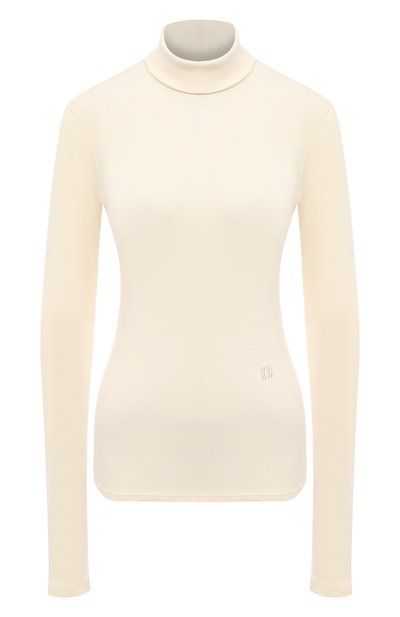 Идея водолазки из осенне-зимней коллекции базируется на двух ключевых аспектах: лаконичность и экологичный материал. За первое отвечает нейтральный кремовый оттенок, а на второе работает легкое джерси из органического хлопка. Его вырастили и обработали без применения химикатов, использовав при этом меньше воды. Так трикотаж получился мягче, а процесс его производства не нарушил плодородный состав почвы.