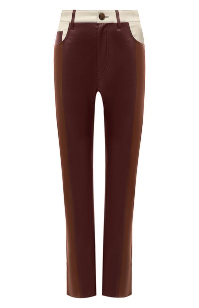 Брюки из осенне-зимней коллекции помогут выстроить вертикаль, делающую образ графичнее: за это отвечают стрелки, которые не потеряют четкость в течение дня. Для пошива модели мастера марки использовали мягкий тонкий материал, стилизованный под матовую кожу.