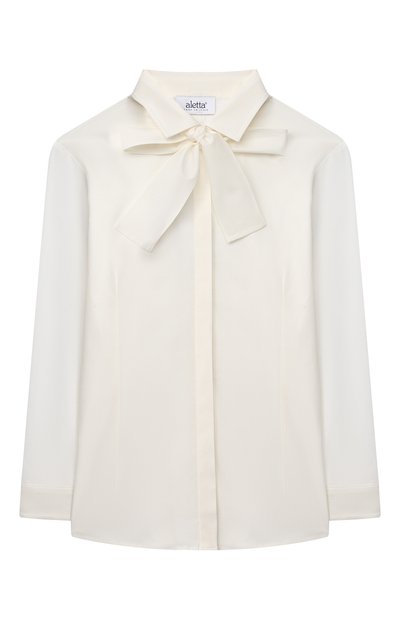 Блуза с длинными рукавами легко пропишется и в повседневном, и в школьном гардеробе: спокойный оттенок ванильного мороженого и широкие ленты, завязанные объемным бантом под отложным воротником, не будут противоречить правилам. Для пошива модели мастера марки использовали тонкий, хорошо пропускающий воздух хлопок.