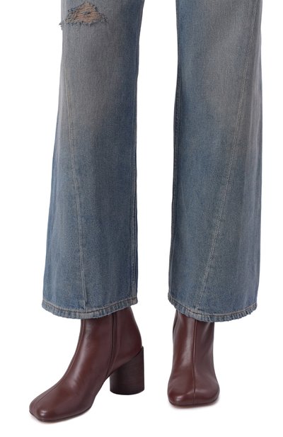 Создавая ботильоны Mariel из осенне-зимней коллекции, дизайнеры марки, основанной Пьетро Лоро Пьяна, сделали ставку на насыщенный винный оттенок. Лаконичную модель (из декора лишь узкие ленты, завязанные на бант) сшили из мягкой, приятной на ощупь кожи. Таким же материалом обтянули невысокий каблук прямоугольной формы. Изделие застегивается на молнию сзади.