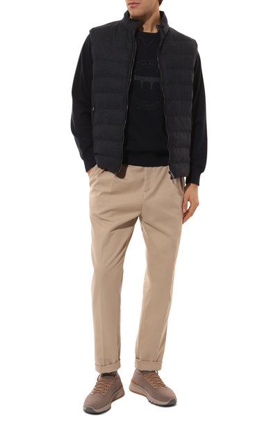 Кроссовки выполнили из шерстяного трикотажа, а для отделки использовали телячью кожу. Задник дополнили брендированными петлей и накладкой, соединенной с протекторной подошвой из полимера EVA.