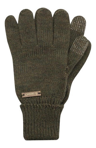 В перчатках цвета хаки будет удобно пользоваться смартфоном. Сенсорные панели на указательном и большом пальцах у модели заменяют металлизированные нити. Для изготовления аксессуара с широкими отворотами на манжетах использовали нежную шерсть мериноса. Материал не колется благодаря гладким волокнам.