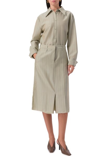 Классическая клетка тоже может выглядеть романтично, если украсить ей юбку со складками, как это сделали дизайнеры бренда, основанного Пьетро Лоро Пьяна. Для пошива модели, представленной эксклюзивно в ЦУМе, использовали нежный практически невесомый кашемир, а чтобы со временем на вещи не появлялись катышки, в состав материала добавили тонкие шелковые нити.
