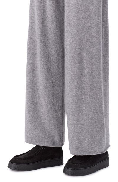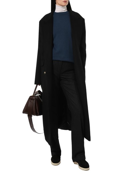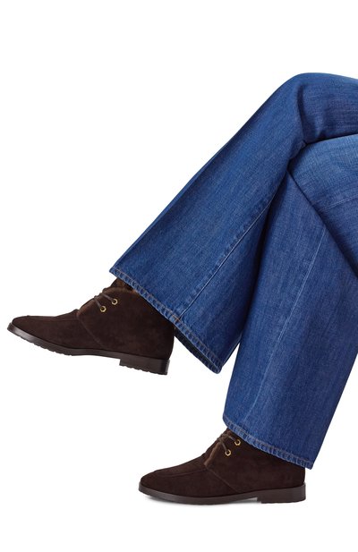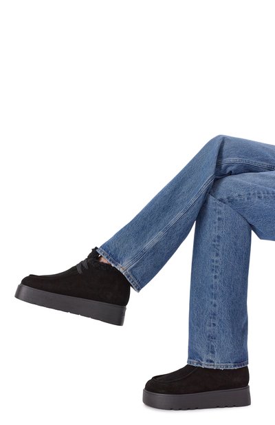 Ботинки глубокого черного цвета отлично подойдут для морозной погоды. Модель из осенне-зимней коллекции бренда, основанного супругами Сантони, сшили из прочной бархатистой замши. Пушистая густая подкладка из меха овчины хорошо греет и сохраняет тепло. Таким же материалом дополнили голенище и язычок.