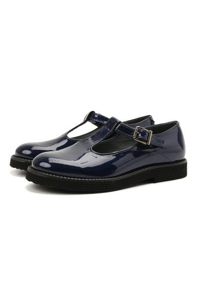 Туфли глубокого синего оттенка почти не ощущаются на ноге. В этом паре помогает специально разработанная для детской стопы ортопедическая колодка. Сшитая из лакированной кожи модель станет удачным завершением школьного образа или наряда для торжественного мероприятия.