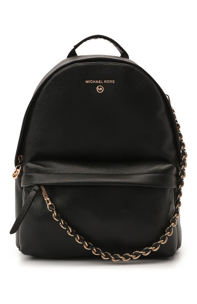 Черный рюкзак Slater станет удачным спутником для городских прогулок. В основное отделение поместятся планшет и телефон, во внешний карман на молнии — ключи и помада. Для пошива модели Майкл Корс выбрал мягкую прочную кожу с крупнозернистой фактурой. Такой материал не царапается со временем, поэтому изделие надолго сохранит первоначальный внешний вид.
