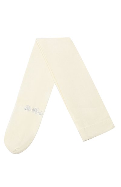 Кремовые плотные колготки мастера марки изготовили из мягкой нежной микрофибры, которая не вызывает раздражений на коже, легко тянется и облегает ноги, как вторая кожа. Модель с плоскими кеттельными швами и широким эластичным поясом украсили аппликацией в виде выложенного сверкающими микрокристаллами логотипа марки.