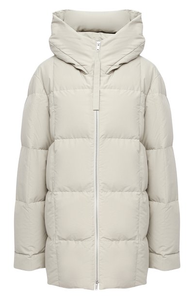 Пастельно-зеленая стеганая куртка получилась легкой и теплой одновременно. Все дело в непродуваемой матовой ткани и невесомом наполнителе, который почти полностью состоит из пуха. Дополнительно справиться с непогодой помогает объемный капюшон, который плавно переходит в воротник-стойку. Изделие силуэта oversize включили в осенне-зимнюю кол лекцию бренда, основанного Джил Сандер.