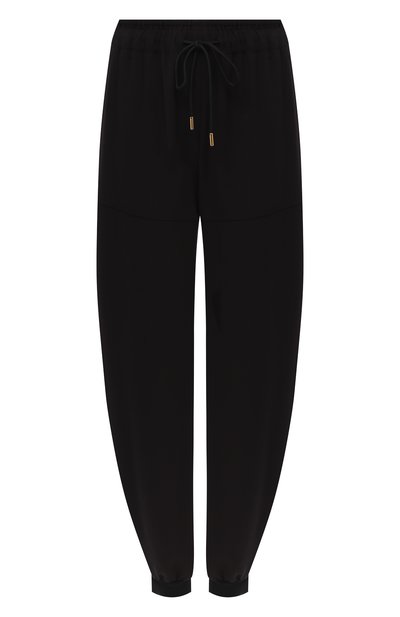Черные джоггеры — универсальный солдат. Наши стилисты предлагают сделать их частью образа с босоножками и блузой или с ботинками или свитшотом. Вывести модель за рамки спортивного стиля помог материал: изделие сшили из мягкого триацетата.