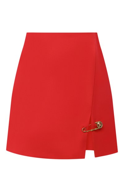 Коралловая юбка поможет правильно расставить акценты в образе. Есть два варианта игры с ее цветом: дополнить такими же яркими вещами или уравновесить активный характер одеждой сдержанных тонов, как предлагают наши стилисты. Донателла Версаче украсила изделие из шелковистой вискозы знаковой для марки булавкой. Модель вошла в осенне-зимнюю коллекцию.