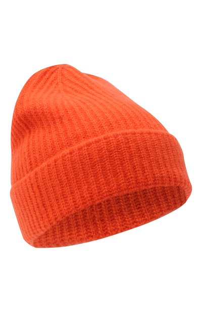 Бини может стать ключевым объектом в образе, если выбрать такую модель оттенка спелого апельсина. Мастера марки связали шапку из легкой пряжи. Оптимальное соотношение шерсти, кашемира и шелка сделало головной убор мягким, очень теплым и прочным. За счет узора английская резинка аксессуар отлично тянется. Широкий отворот украсили небольшой эмблемой бренда.