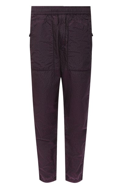 В осенне-зимней коллекции джоггеры получили новое прочтение. Кроме насыщенного фиолетового оттенка модель примечательна материалом: глянцевая легкая ткань заменила привычный для таких вещей трикотаж. Жатая текстура и окрашивание в готовом виде создают полутона на поверхности материала. Брюки с эластичным поясом дополнены тремя карманами: двумя объемными накладными спереди и врезным сзади.