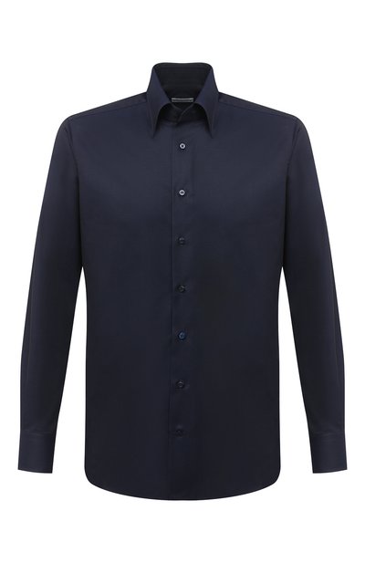 Темно-синяя сорочка из коллекции сезона осень-зима — универсальный солдат. За счет лаконичного кроя и полного отсутствия декора модель с воротником кент гармонично впишется и в офисный наряд с костюмом, и в более расслабленный casual-образ. Легкий хлопок, из которого сшито изделие, комфортно облегает фигуру и позволяет телу дышать.