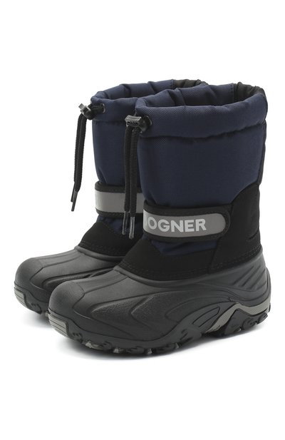 Синие сапоги сшили из легкого термопластика и плотного фактурного нейлона, поэтому они будут незаменимы в дождливую погоду. Модель дополнили шнурками, продетыми в кулиску на голенище, и широкими ремешками с лентой велькро на щиколотке, поэтому отрегулировать посадку не составит труда. Массивная подошва с рифленым протектором дарит устойчивость на неровных поверхностях.