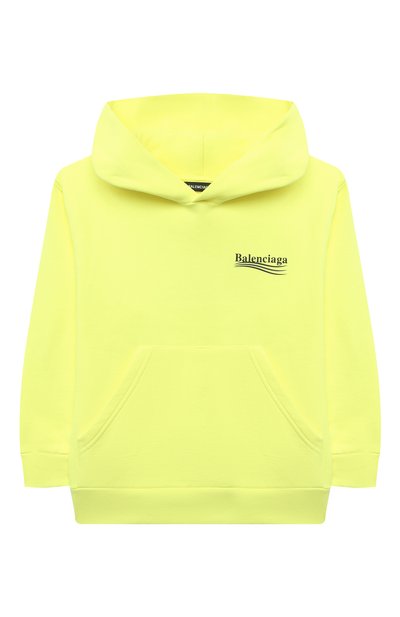 Ярко-желтое худи будет идеальным вариантом и для простой прогулки, и для активных игр. Модель обеспечивает необходимую свободу движения и при этом помогает с терморегуляцией благодаря плотному мягкому футеру из дышащего хлопка. Сзади изделие украсили принтом в виде логотипа бренда, подчеркнутого волнистыми полосами. Узор повторяется на месте нагрудного кармана.