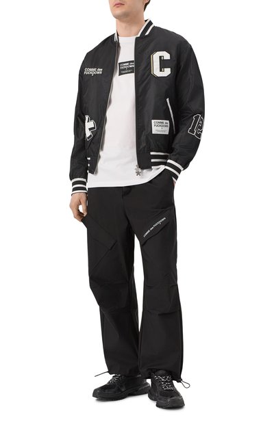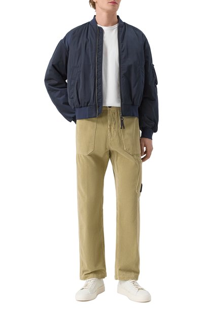 Бомбер насыщенного красного оттенка ̶ простой способ ввести яркий цвет в повседневный гардероб. Гладкий хлопковый сатин с добавлением прочных волокон полиэстера отталкивает капли дождя и защищает от ветра. Трикотажные полосатые пояс и манжеты отвечают за комфортную посадку по фигуре. Утепленная куртка с воротником-стойкой и крупным логотипом марки спереди вошла в коллекцию сезона осень-зима.
