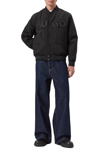 Бомбер насы щенного красного оттенка ̶ простой способ ввести яркий цвет в повседневный гардероб. Гладкий хлопковый сатин с добавлением прочных волокон полиэстера отталкивает капли дождя и защищает от ветра. Трикотажные полосатые пояс и манжеты отвечают за комфортную посадку по фигуре. Утепленная куртка с воротником-стойкой и крупным логотипом марки спереди вошла в коллекцию сезона осень-зима.
