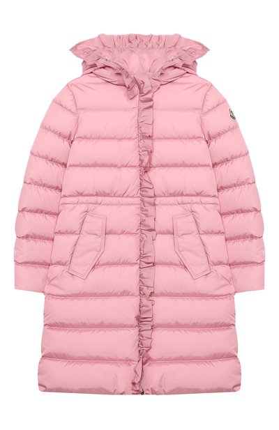 Светло-розовое стеганое пальто сшили из гладкого шелковистого нейлона, обработанного водоотталкивающим составом. За счет наполнителя из легкого отборного пуха и пера модель поддерживает оптимальную для тела температуру и в теплую, и в морозную погоду. Для комфортной посадки на поясе предусмотрели потайную кулиску.