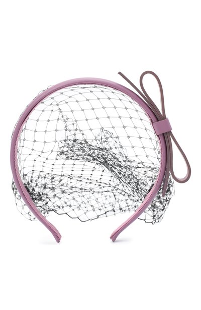 Сиреневый ободок не выглядит просто. За правильное настроение у модели отвечает объемный бант и сетчатая вуаль в горох. Мастера марки изготовили аксессуар из мелкозернистой кожи, которой обтянули каркас, поэтому изделие мягко облегает голову.