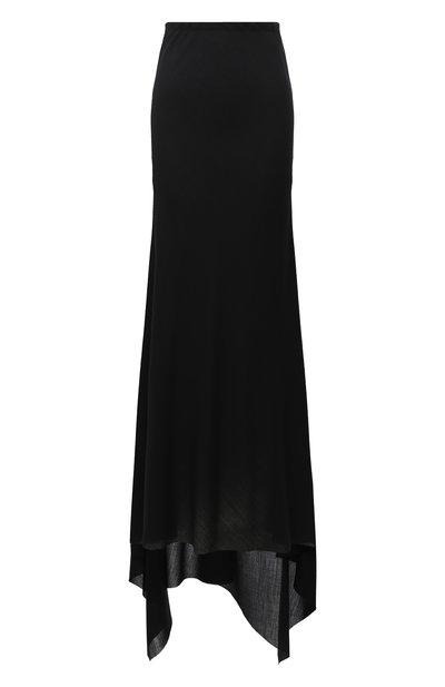 Несмотря на универсальный черный оттенок и полное отсутствие декора, длинная юбка из осенне-зимней коллекции бренда, основанного Анн Демельмейстер, не выглядит слишком строго. Правильное настроение задает асимметричный подол, формирующий короткий шлейф. Модель выполнили из тонкой мягкой шерсти.