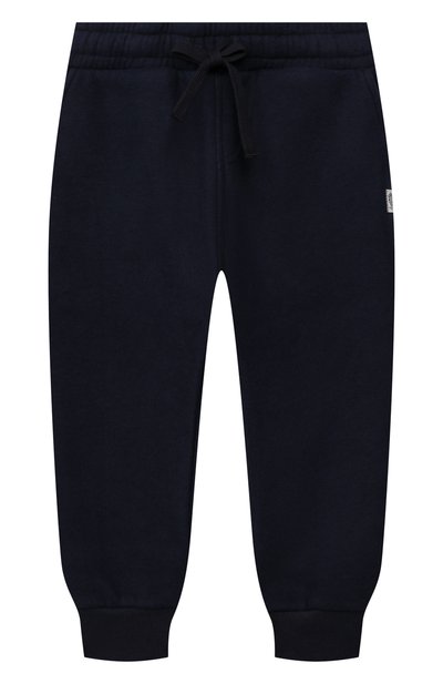 В темно-синих джоггерах ребенку будет комфортно во время прогулок и активных игр. Для пошива модели с заниженной линией шага использовали легкий трикотаж на основе мягкого хлопка и прочного тенсе ла, который хорошо пропускает воздух и отводит влагу. О принадлежности марке говорит патч с эмблемой бренда.