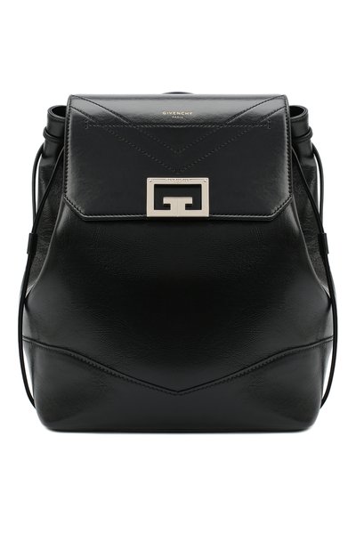 Рюкзак из осенне-зимней коллекции бренда, основанного Юбером де Живанши, выглядит максимально аскетичным: универсальный черный цвет и позолоченная фурнитура. Ее поддержали небольшим логотипом марки на широком откидном клапане. Для пошива модели использовали зернистую кожу с глянцевым блеском. Внутрь поместятся складной зонт, кошелек и планшет.